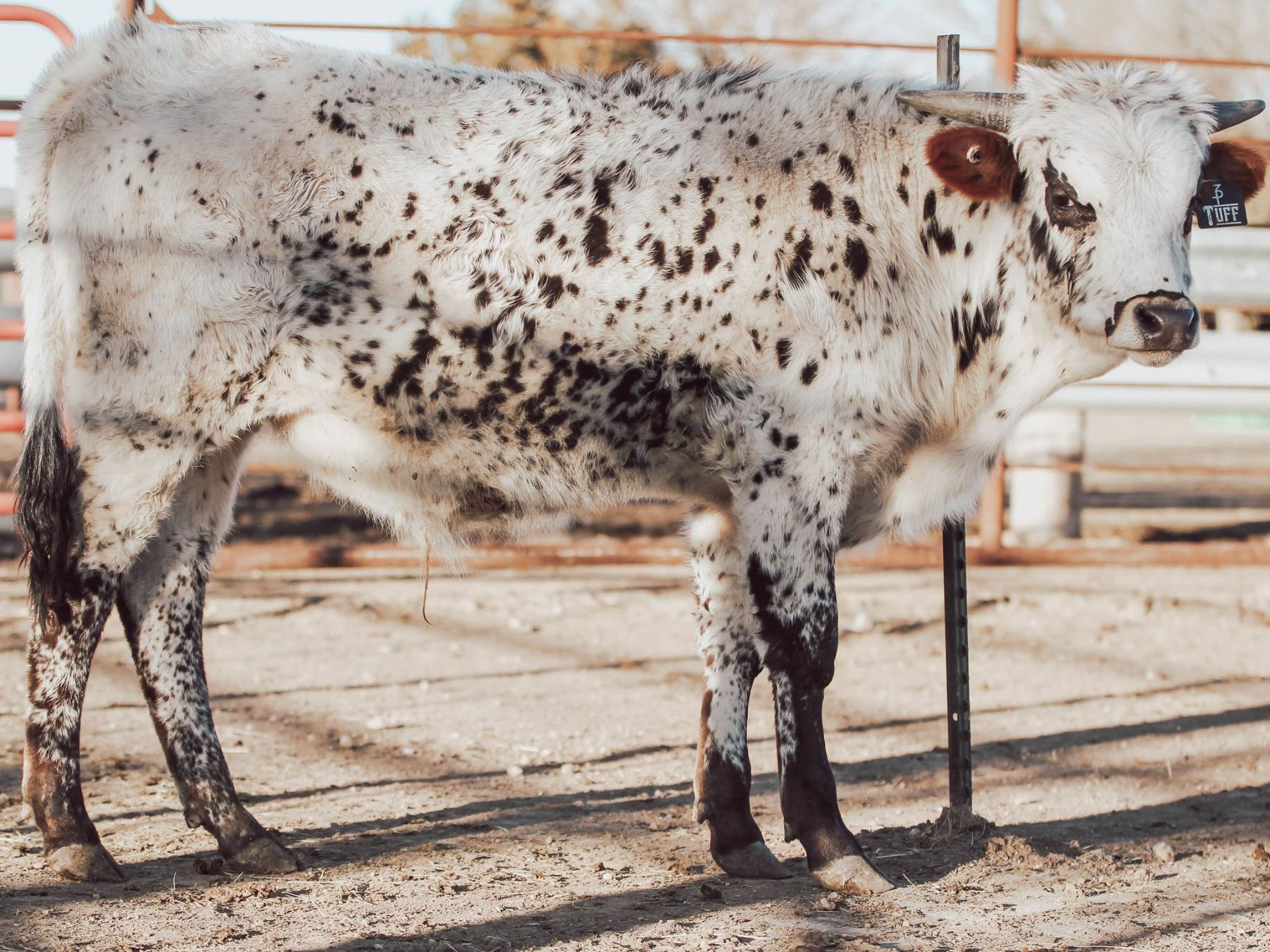 Amazing young bull weighing 569 at weaning with almost 20" ttt horns. He's big bodied, a flashy parker and has a pedigree dreams are made of. His Dam is an almost 90" ttt daughter of Cowboy Tuff Chex and his sire is Spokesman known for color, size, and putting on the horn. He's bull material and will be ready to work this Spring. He is fully vaccinated, dewormed, branded, and registered. He's also BVD and BLV negative.