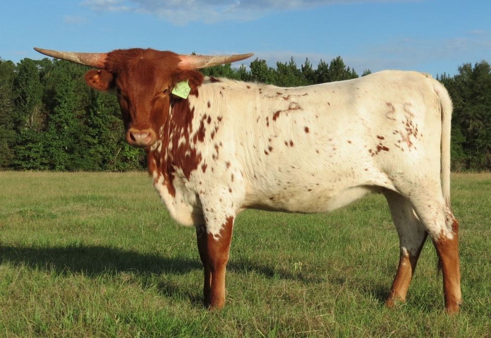 Her dam, Annie Get Your Rifle is a super cow! She has won several futurities and horn measuring competitions. Plus, she is one of the prettiest cows we've seen. Her granddams got to the top of our program by out producing themselves with both daughters and sons with tremendous horn producing genetics. So we're going to offer Annie Oakley to you. We'll leave her open to breed to your bull when you get her home. She sells with a reserve.