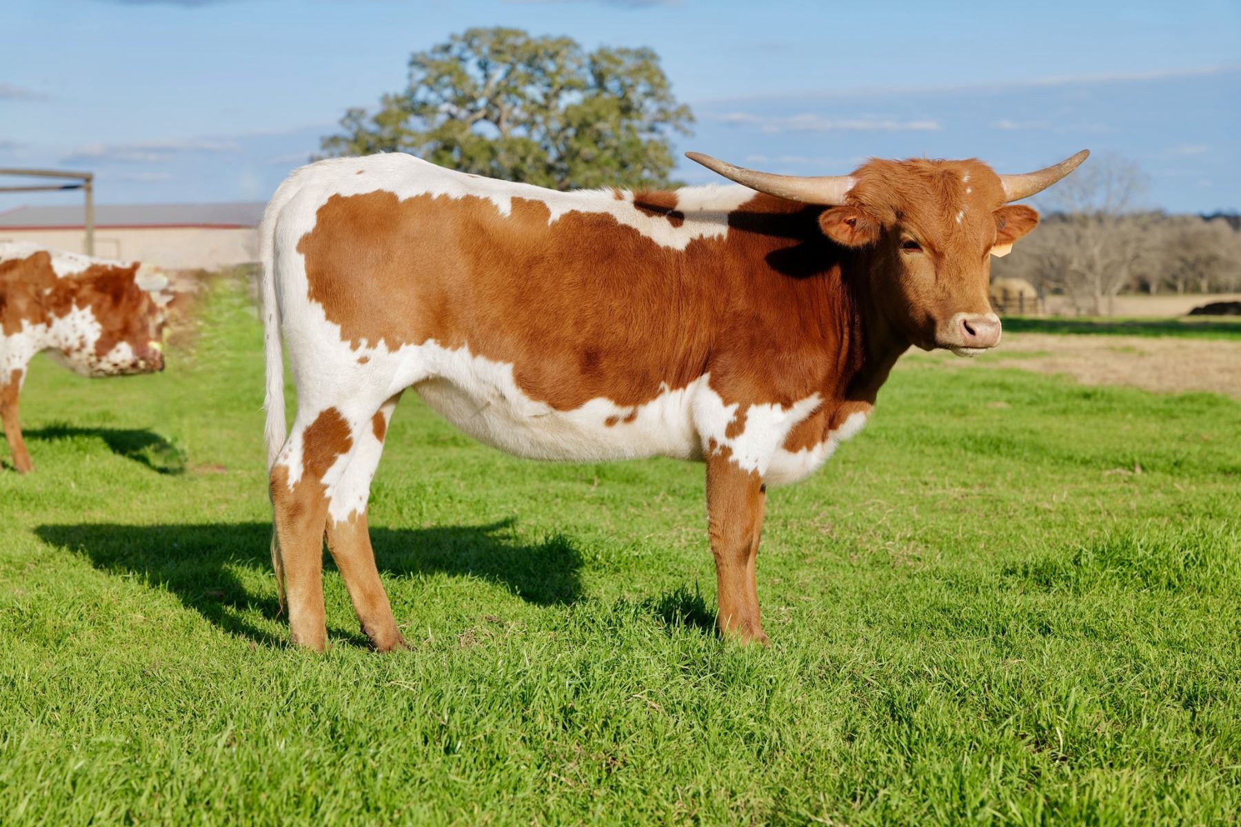 Comments: Impressive pedigree on this one. Her dam ECR Summer Siren is a full sister too ECR True To Tradition. Siren measures 87” TTT. Her sire, Goldmine 1, measures 85.5”. She has the most beautiful set back twisty horns I have ever seen. This combination of genetics has been very successful for us. She is good natured and