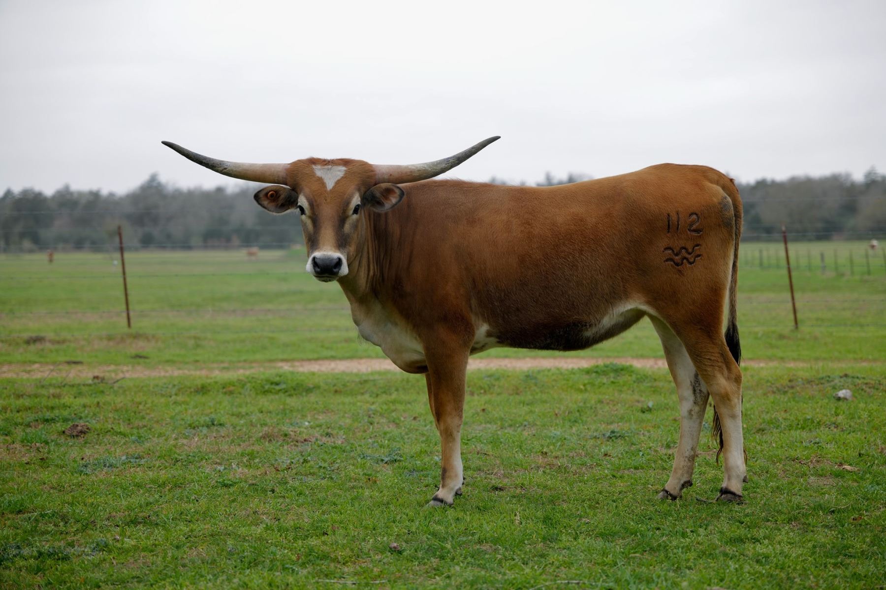 Comments: Bonita is just a her name says, beautiful. She is feminine and elegant. She is calm and easy to work, has good black feet and measures 44 @ 18 mo. the black horn has just grown out. Both