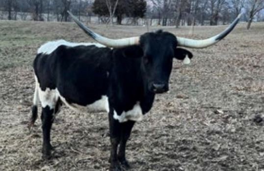 Comments: Gentle, good looking black and white cow. Selling her bull calf today. Exposed to good looking young bull with great potential