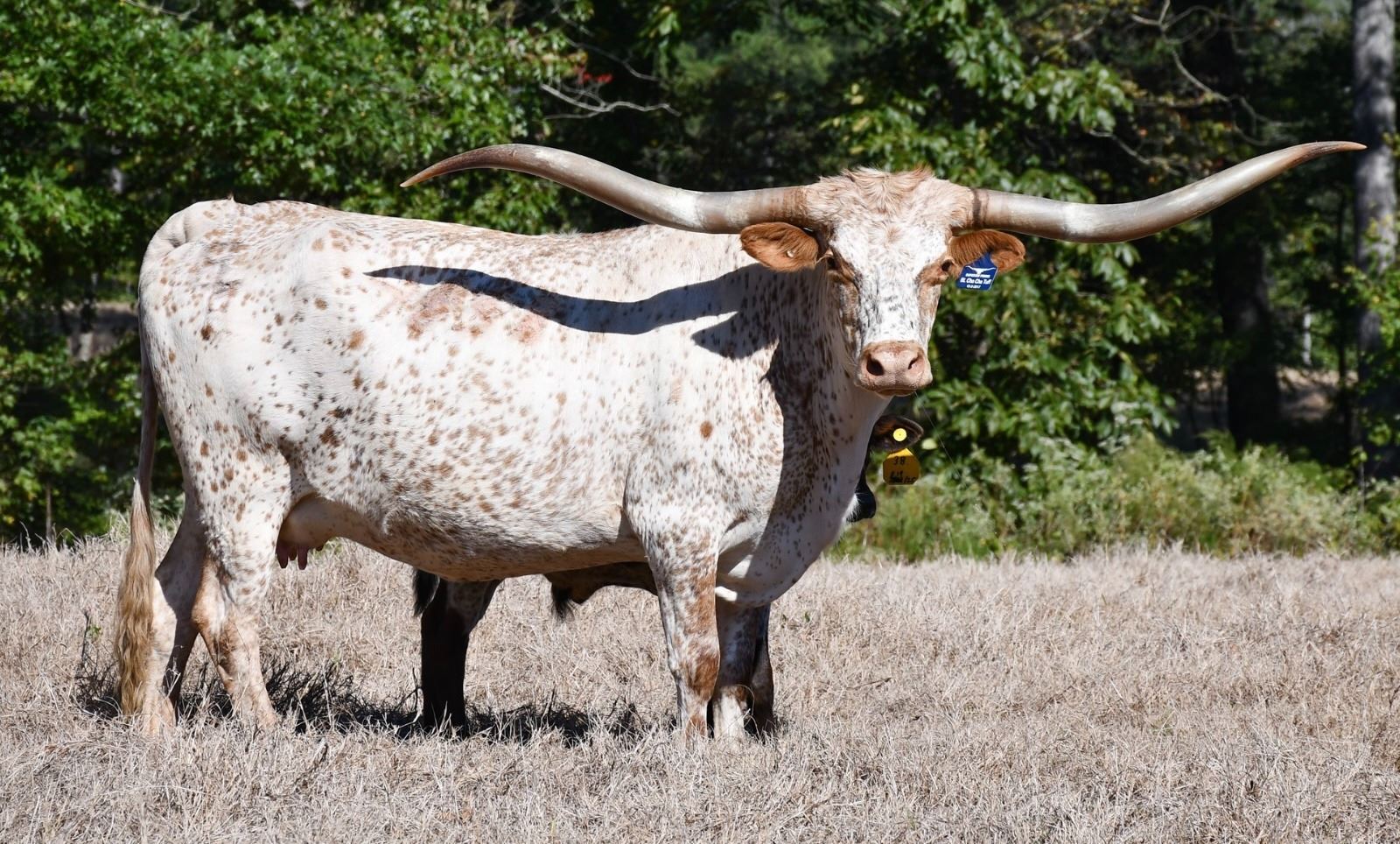 She is a direct daughter of the legendary $165,000 Cowboy Tuff Chex, the longest horned Texas Longhorn bull in history and a proven producer of elite horn genetics. With Cowboy Tuff Chex on the top side and a pedigree stacked with proven producers, this female offers both genetic predictability and market appeal.