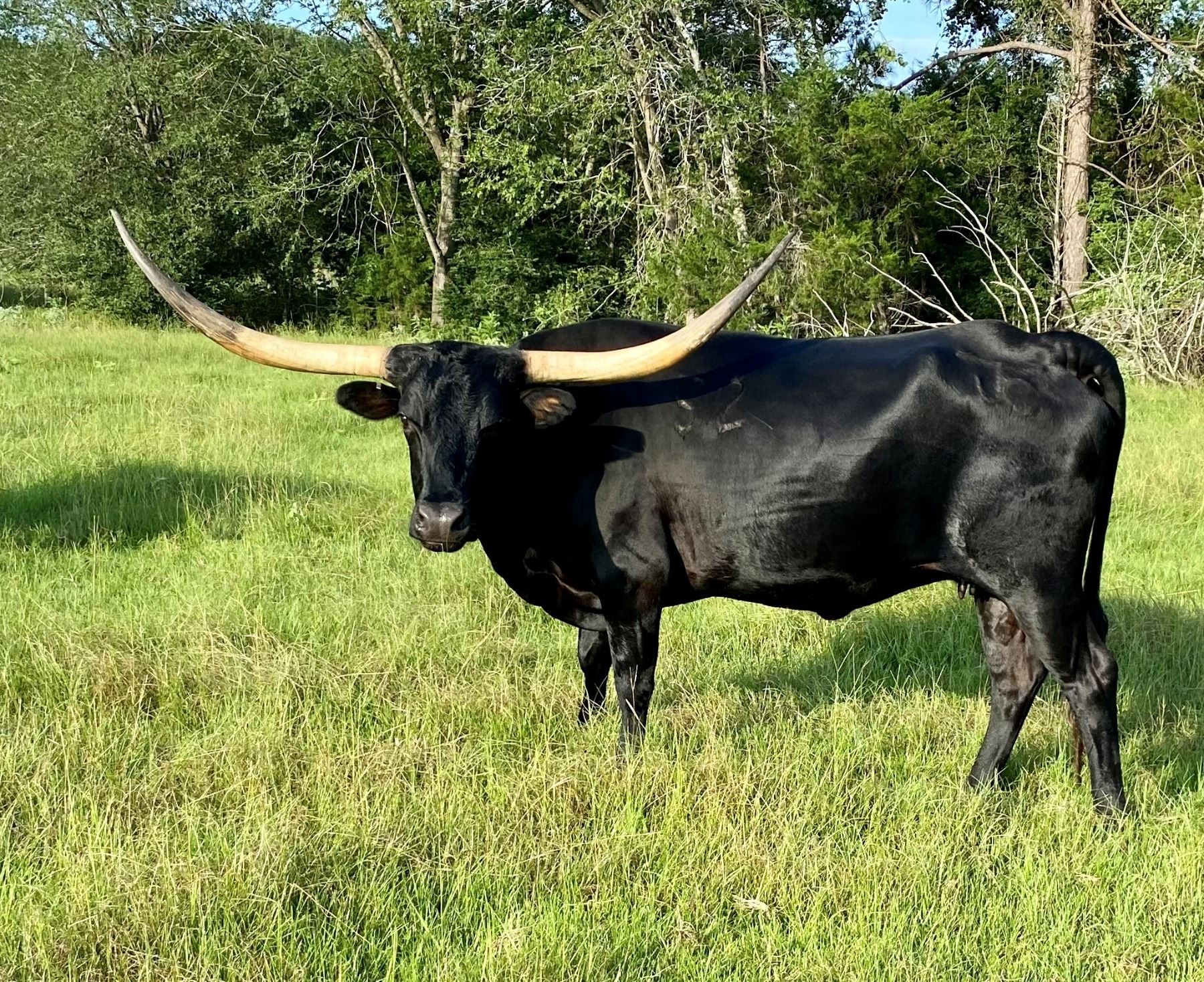 Bringing to you a solid, true black cow. She is easy on the eyes and easier out in the pasture. She will be sold with her beautiful TRUE BLACK bull calf at side out of Pearl Snap BCB. No doubt to be a future heard sire. Pearl Snap BCB was 2021 Producer of the Year and 2021 Bull of the Year. Exposed to Dynamic, witnessed breeding on 10/28/2022.
