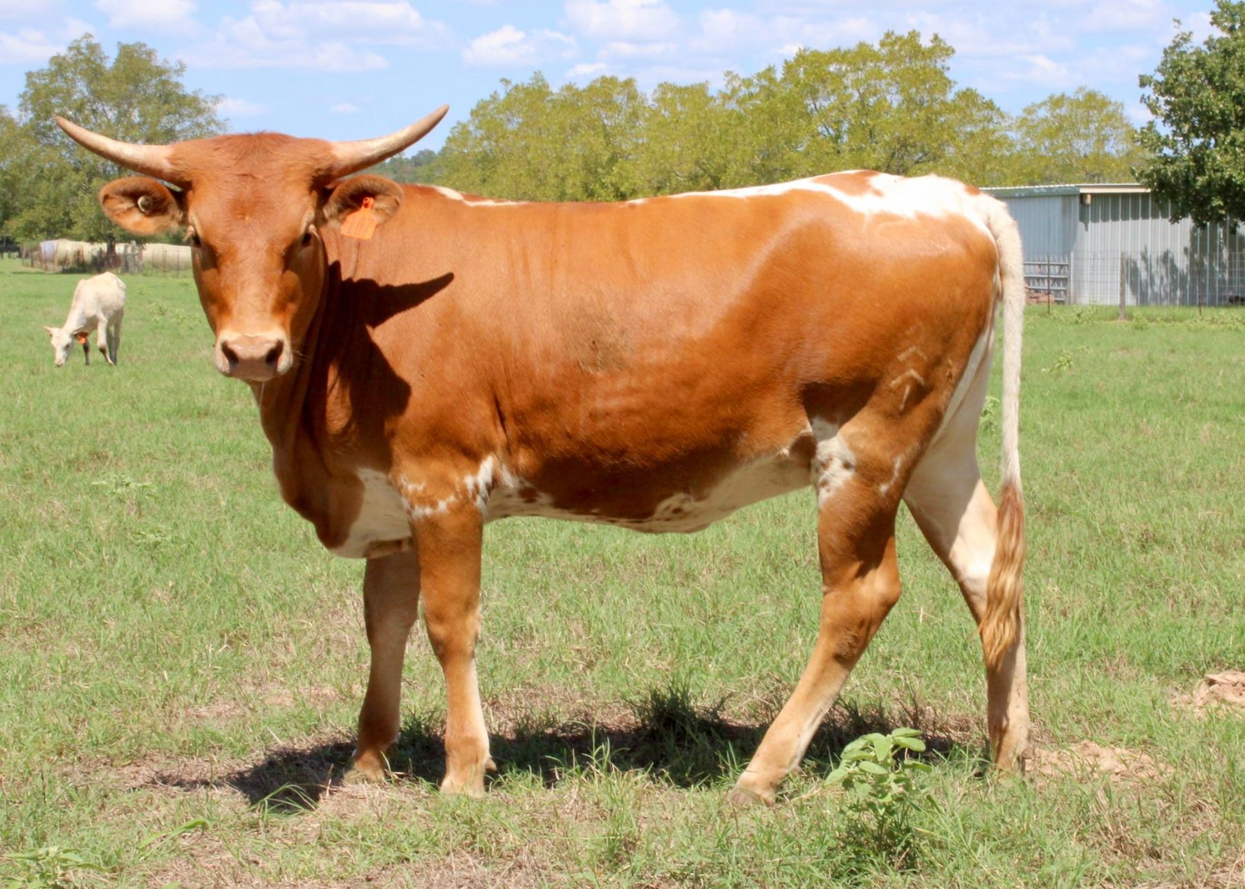 This beautiful heifer has lots of twist in her pedigree. Don't get discouraged because her horns are growing up. She has plenty of time to mature and produce an incredible set of horns, just like her momma, ACC Bootifull. Not Exposed.