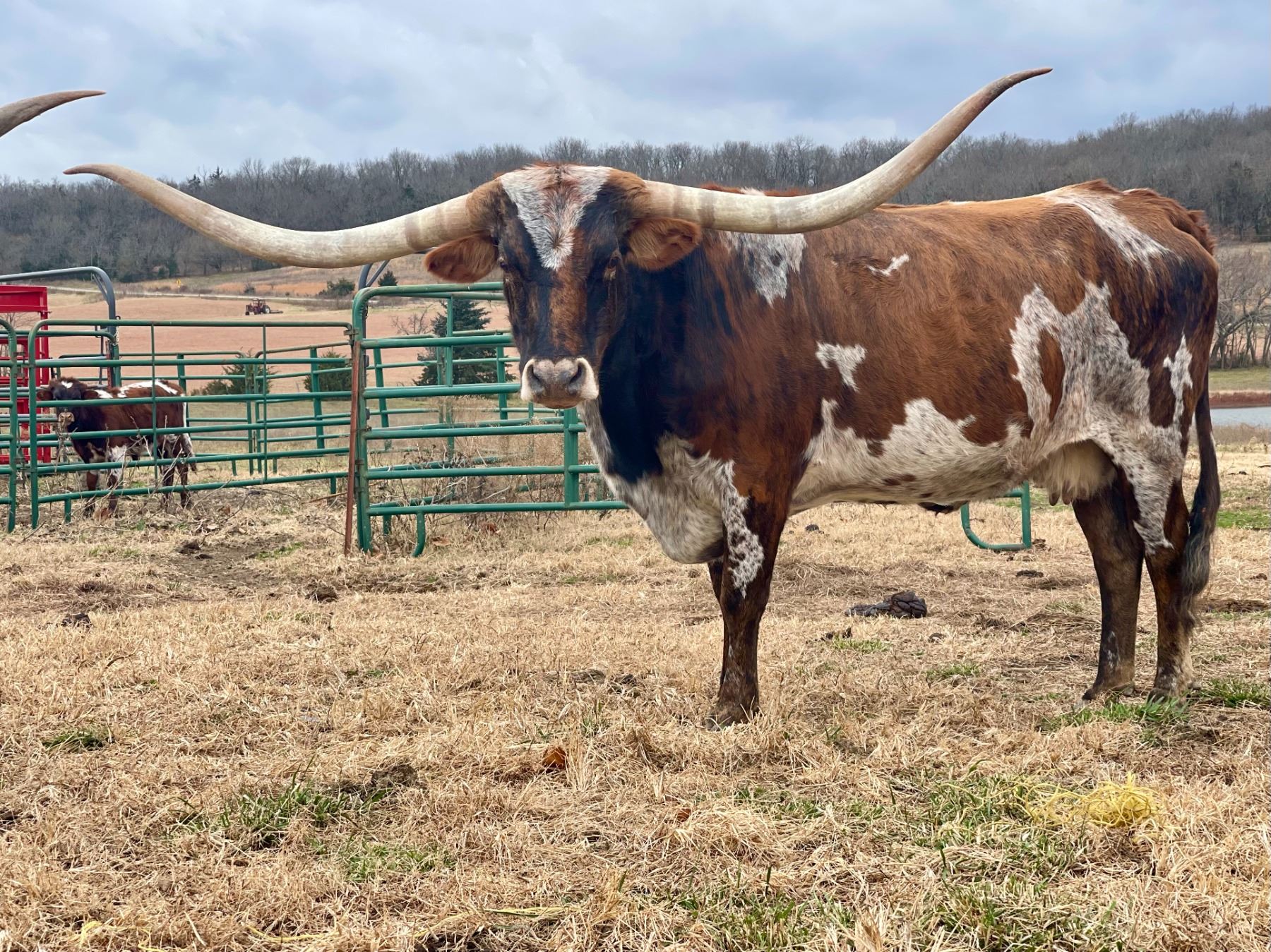 COMMENTS: What can I say that her picture doesn’t already say? Chex Mix is one of the most beautiful brindle cows you’ll ever find. She should be nearing, if not already at 90” T2T by the sale, and she should have a calf at side by Ringman BCB. Chex isn’t just my best Longhorn, she could be one of the best in the breed. They just don't come any better.