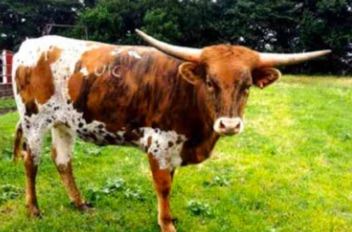 OCV’d. D/O Axmans Brindle Lady is an outstanding Heifer super Brindle Tri coloring. Her sire 5D Axman five times Bronze winner with right at 80” TTT. Her dam, a swooped horn 911 daughter. She has show quality conformation, size and nice based horns 41” TTT at 14 months 7 days old. Her horns are projected to be 80” TTT at maturity. She is Millennium Futurity eligible. Not Exposed.