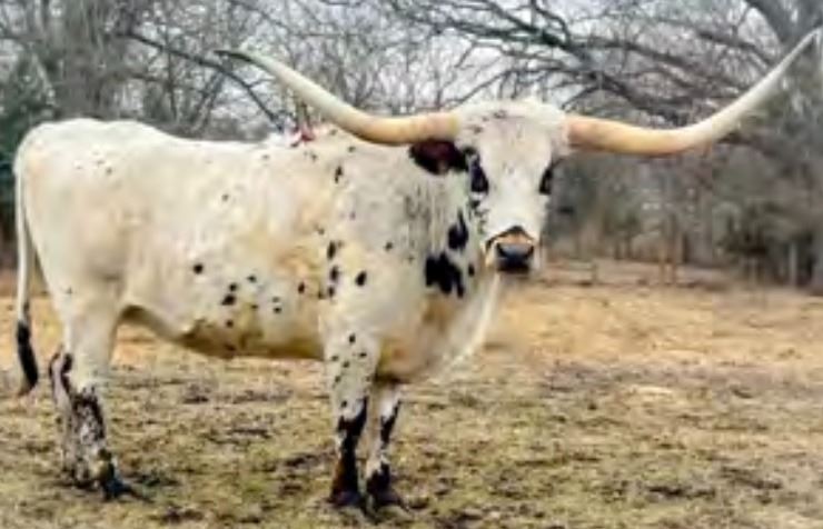 Comments: This cow’s dam has mid 80” TTT. She is a granddaughter of Dunn Gun Bomber, 87” TTT. She has nice horns and conformation and she’s a good producer. Had beautiful heifer calf in ‘22 that we’re keeping. Current horn measurement on sale day