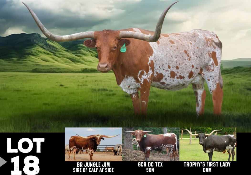 COMMENTS: Huge framed female with a mountain of Total Horn. Her daughter from Cowboy Chex is on her way to the upper 80’s or 90” TTT. DC Trophy’s Dam was a huge framed black and white cow with a unique twist. We are keeping her son in the program as a junior herd sire. She is bred to BR Jungle Jim for a spring 2023 calf. This is a cow that you can take home and do some IVF work with and build a program around