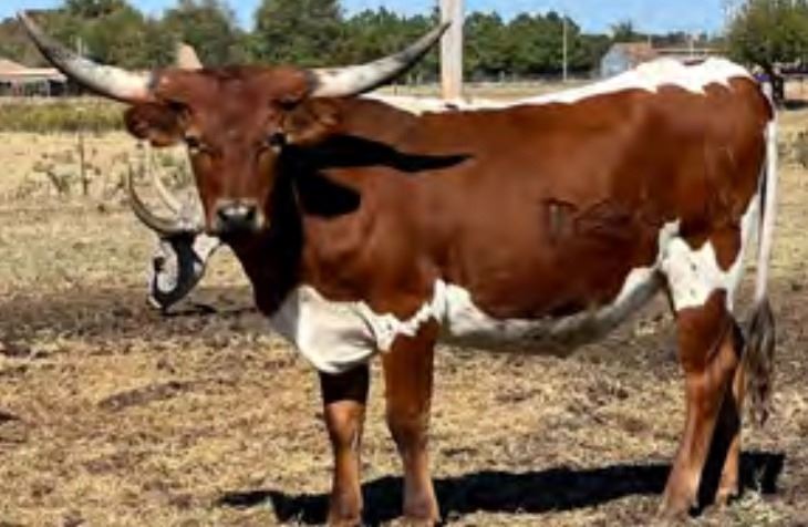 Comments: Bertha is a big bodied, blue eyed sister to our 90” RM Iron Ruby. She has big body genetics on both sides and sire was a black and white, Tuff Chex grandson. Checkout her sister @DGLonghornRanch.com