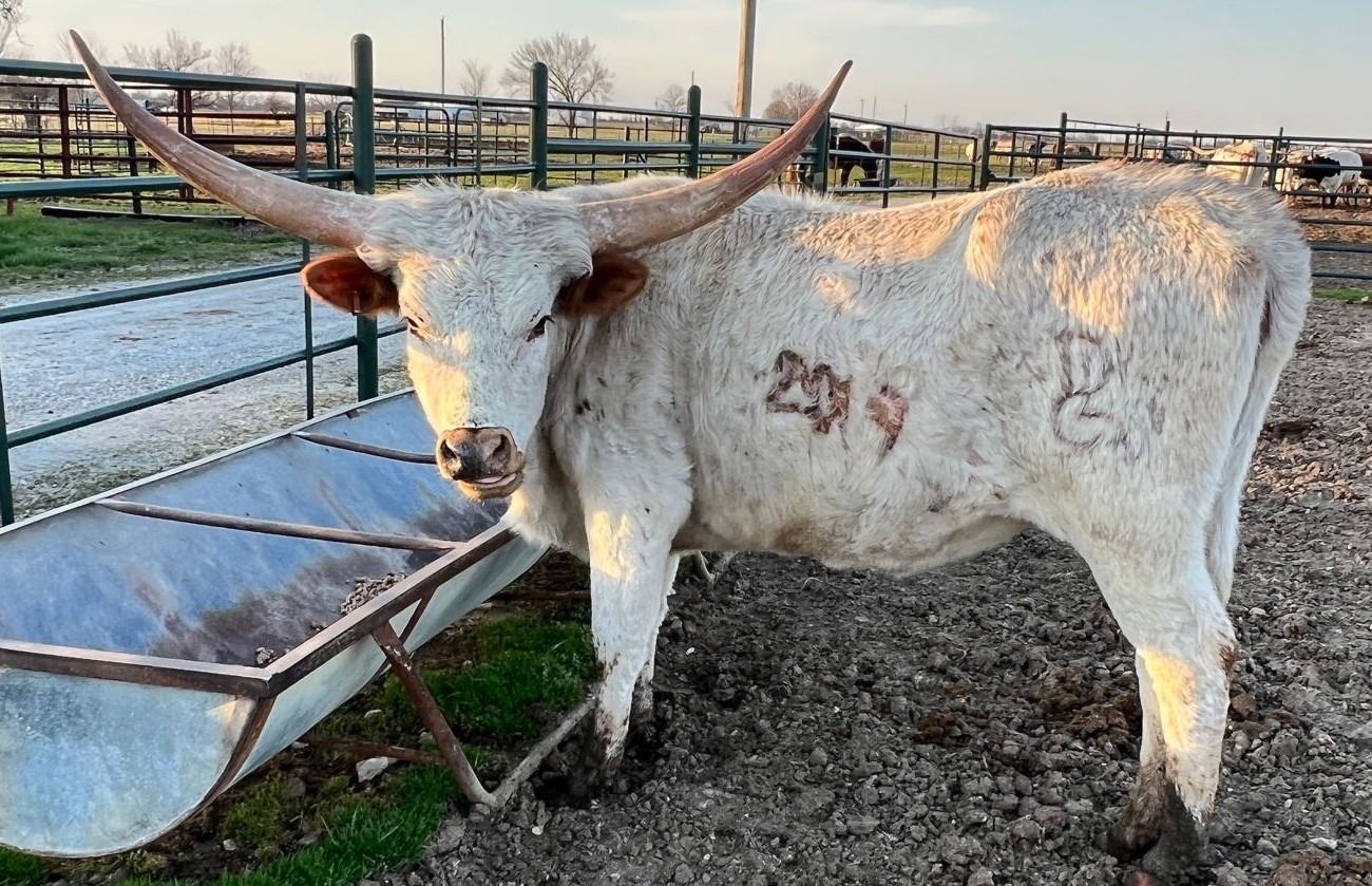 Comments: SoSo is a sweet heifer and a genetic gem. 3 generation pedigree includes: Cowboy Tuff Chex, Drag Iron, Field of Pearls, RM Checkered Flag, and Temptations the Ace. Short exposed to DG Cold Cash (Zabasco + Boomerific over Bandera Chex + Little Ace Lobo). Check them out @ DGLonghornRanch.com