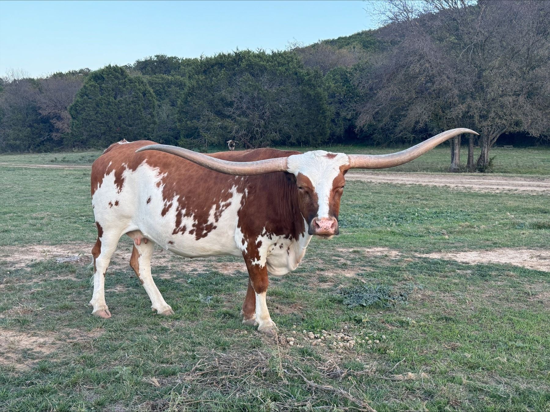 DH Dolly is a special genetic package - double bred DH Red’s Temptation. DH Red’s Temptation has produced 3 females over 90” by 3 different bulls. With over 80” of tight, rolling, twist, Dolly is following in her legendary pedigree’s footsteps, displaying the horn growth and twist you would expect, and the body and production we all demand.