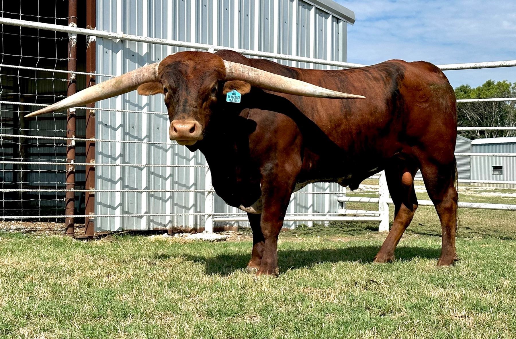 DH Hired Hand was 40.25” TTT at twelve months and 73.50” TTT at twenty four months. He was a Millennium Futurity class champion in 2022; Horn Showcase Futurity Champion in 2022 and the Legends Futurity Grand Champion bull - winning the trailer! DH Hired Hand brings early horn growth, is very correct, with good bone and heavy muscle.
