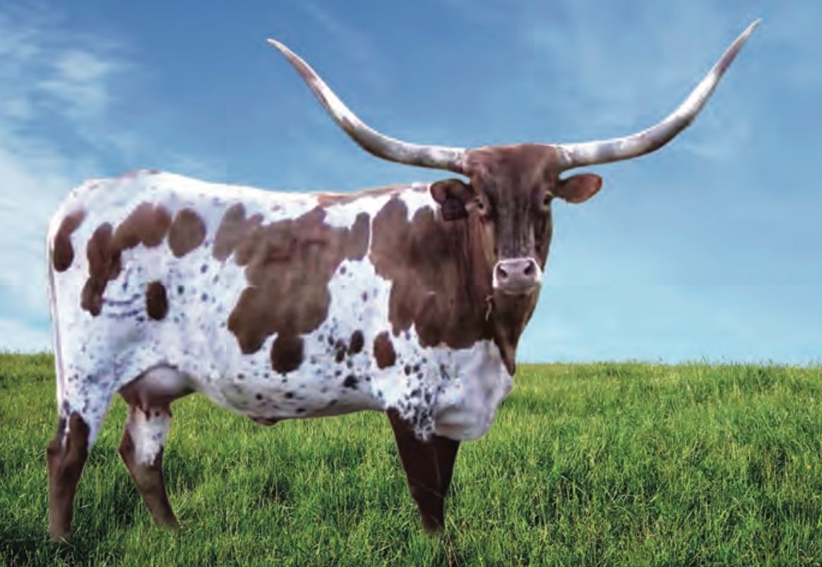 COMMENTS: OCV’d. DH Rowdy’s Red River is a full bodied, super flashy female with a perfect udder!! Her dam is a twisty horned Loomis branded female that has a lot of Butler blood in her. We have Rowdy’s Red River bred for a late spring calf by HL Higher Ground. He is a black and white son of Vindicator out of the 90” Horseshoe J Important cow.