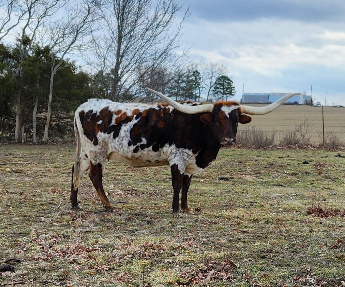 Comments: Beautiful brindle cow with rolling horns. TTT measurement announced on sale day.