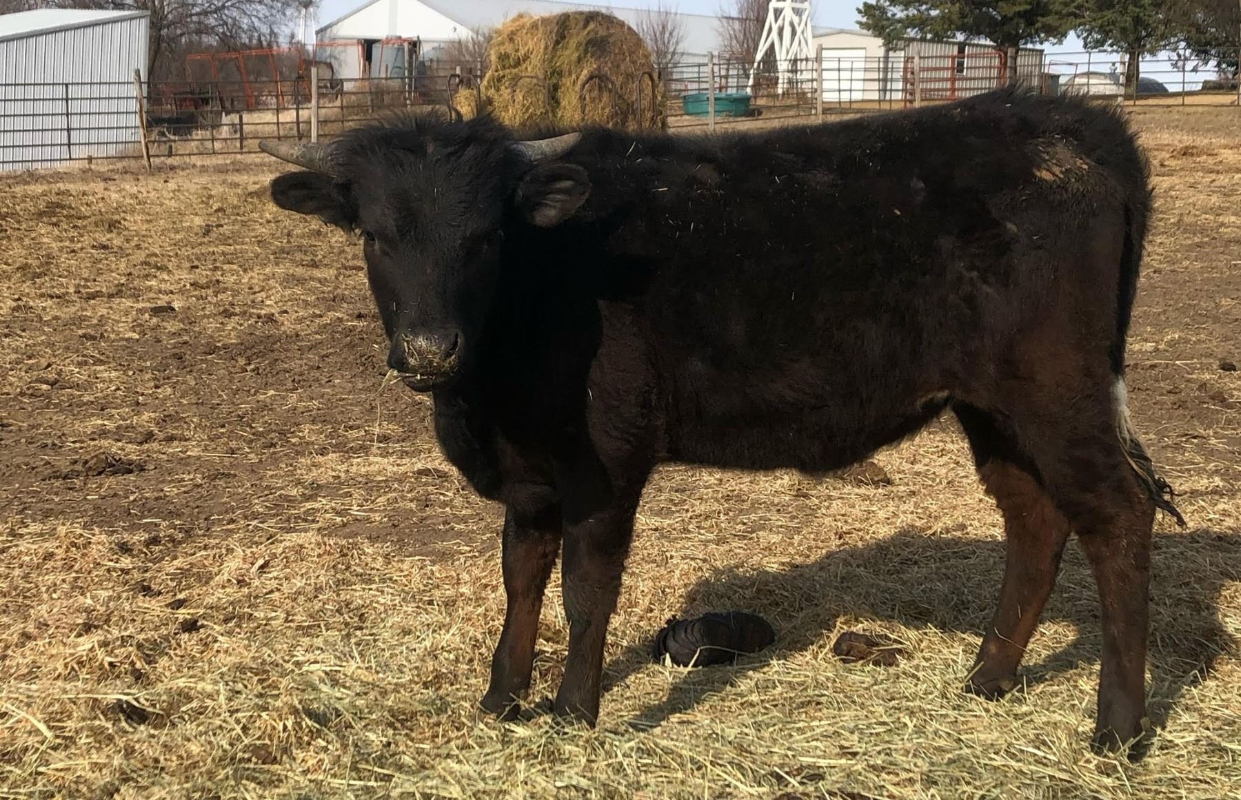 Comments: Nice, thick black heifer, horns are laying back. Great disposition.