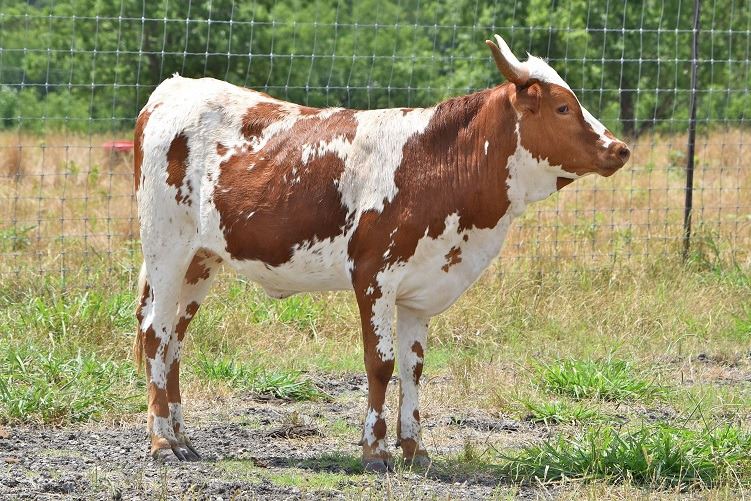 OCV. Foundational El Coyote Ranch breeding. Beautiful young heifer that is going to have a ton of laid-back horn just like her dam "ECR So Striking" that recently sold for $8,000+ at the Midwest Invitational Sale. More info at www.helmcattlecompamy.com Click to View