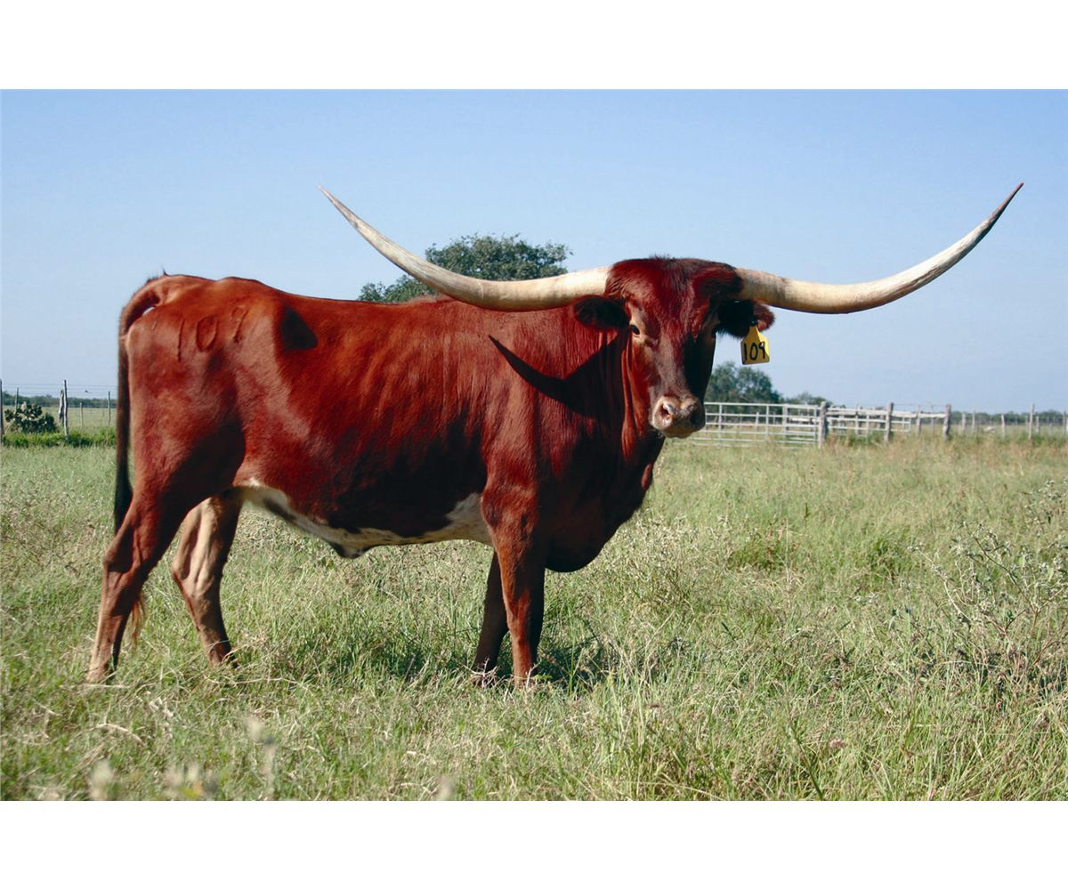 OCV. Here is your chance to own a spectacularly unique young female. In this rare opportunity we offer a one-of-a-kind female backed by performance and pedigree. Her genetics boast a stellar combination of legends Don Julio, Tari Graves FM 49, ECR Miss Houston 336, and Hunts Command Respect. This Horn Showcase Champion is a 2011 model, who will not turn 4 until February and officially measures in at 76 9/16" tip to tip and 91 1/4" total horn. She is bred to our Tari Graves FM 49 x JP Rio Grande son, Rio Bravo ECR for an early 2015 calf. There will never be another one like this, don't miss your chance to own this fantastic female. Updated breeding and measurement information will be available on sale day