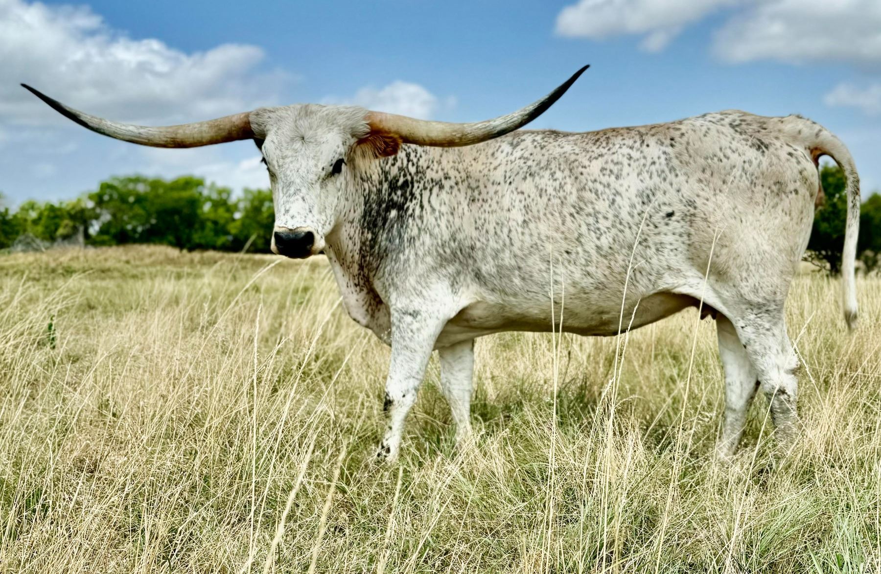 Comments: Liza is a beautiful, speckled up deep blue roan with a great disposition and lateral, black tipped horns. She eats cubes from your hand and is exposed to TCC 50 Bullets. Can’t wait to see this calf! See more at www.crossfirelonghorns.com