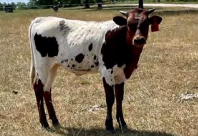 Comments: Sweet, young heifer out of AA Stars & Stripes. JP Rio Grande & Fiesty Lee JR breeding. Will likely throw very colorful calves. Check out her Dam in sale today. Great disposition and horn potential.