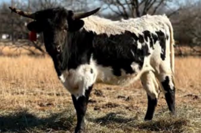 Comments: Amazing heifer out of Scattergun 709. Goes back to Sittin Bull & Concealed Weapon. Great temperment & conformation. Dam has huge & twisty horns. Exposed to AA Stars and Stripes for a colorful calf.