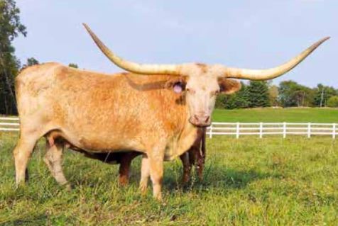 COMMENTS: Frosty Hail has given us a knockout heifer that is in the sale as well as a sharp looking bull prospect by Hubbells Butch Cassidy. She is bred back to Butch for another exciting calf. A proven producer with eye catching color out of the same maternal line as BL Rio Catchit! What more could you ask for? For more information, go to pinebrotherslonghorns.com