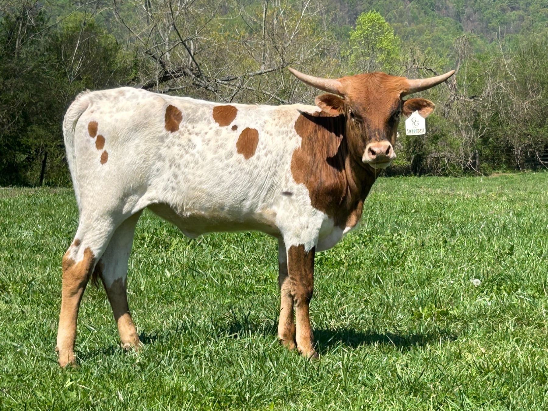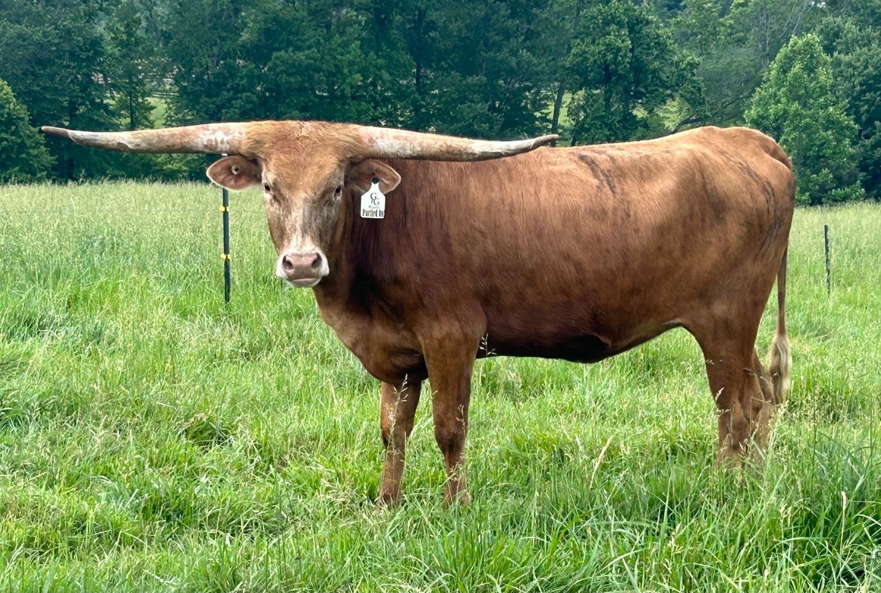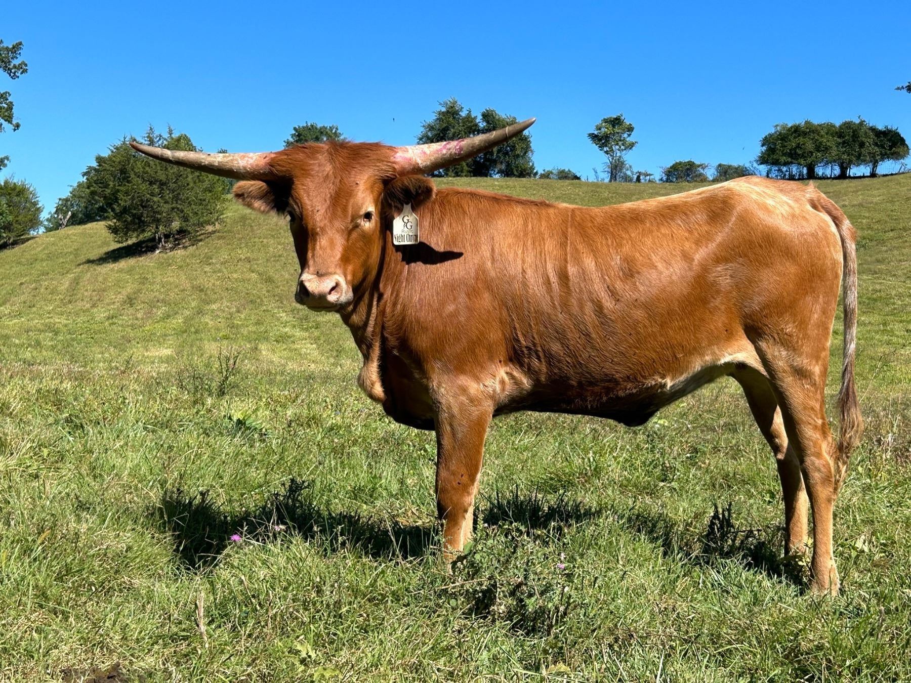BCR Mary is brindle, has good horn, good temperament and is exposed to WS Justified. (WS Vindicator X WS Rhinestone) He measured 85.5' just after his fourth birthday. Lots of good genetics here. www.GandGTexasLonghorns.com