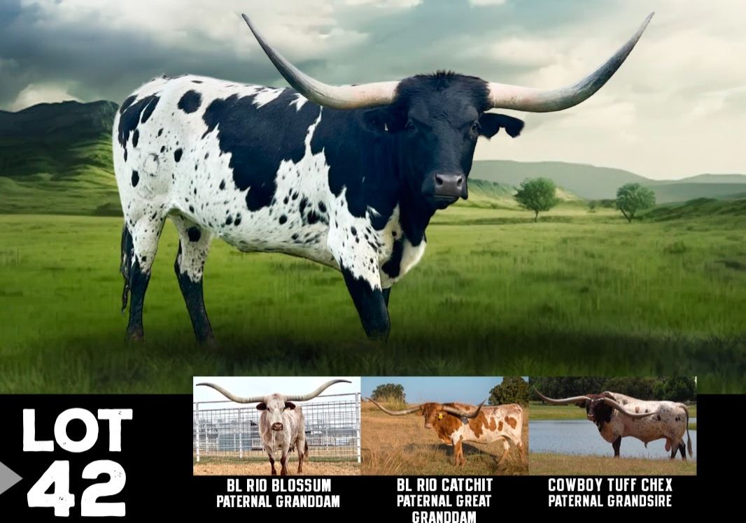 COMMENTS: Gladys HCL is a gorgeous true black and white female coming to you exposed to DC Rowdy’s Reign from 7/26/22-8/20/22 and exposed to our son of the great Fifty-Fifty BCB, NDN Scare Crow from 12/21/22-2/14/22. Gladys’ top side is straight out of the amazing Loomis Ranch giving you over 100” Cowboy Tuff Chex and over 100” BL Rio Catchit. As well as bringing in both over 90” TTT Blossum cows from the heart of Bob’s herd. 2023 calf. Pregnancy and measurements to be shared at the sale
