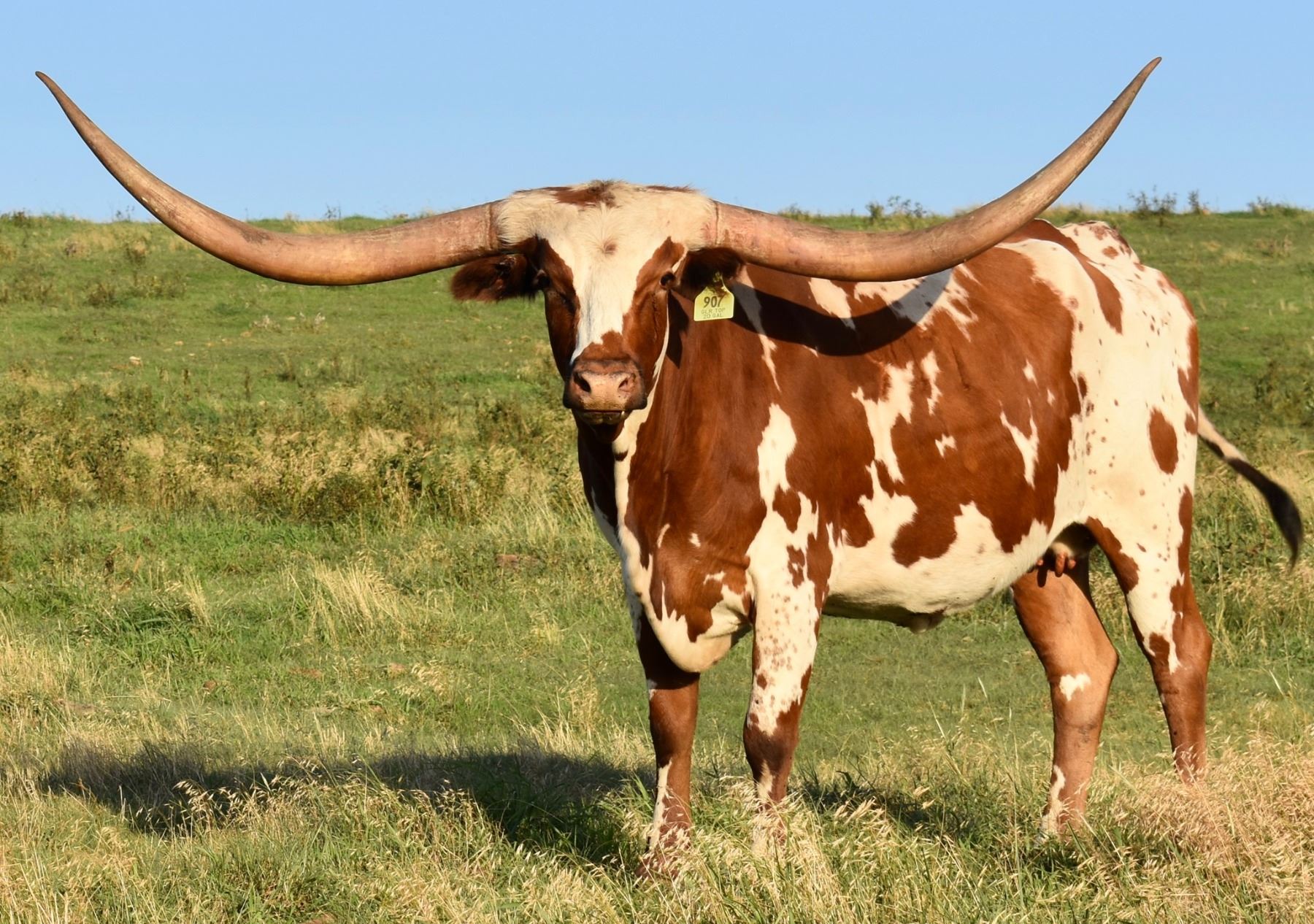 package-- size , conformation, color, pedigree AND horn-- hitting 80’’ TTT at 3.3y. She towers over the herd and reigns as the focal point in the pasture. She is now approaching 90” TTT won’t be 5 years old until March 2024. She is confirmed bred to PCC Cactus Jack(87’’ @3.2y) --the 2023 Legends Grand Champion bull and the 2023 TLBAA Horn Showcase Ultimate bull.
