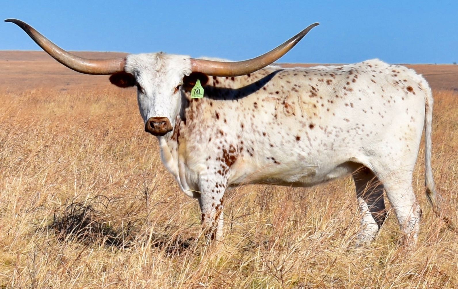 COMMENTS: OCV’d. Johne’s negative. This 4.5 year old Pacific Mermaid granddaughter keeps rolling out more horn and adding more color each year. She has a ton of of twist and 80’’ TTT ancestors in her pedigree with such examples as RC Tsunami 2, Concealed Weapon, JP Rio Grande and Miss Gladys, Horseshoe J Example/Charm , Starlight, Delta Van Horne and Tari Graves.We are keeping her Gold Mine 1 heifer for replacement. She has been exposed to Gold Maxim (Gold Mine 1 X Casanovas Maxim) for a fall 2022 calf. Latest pregnancy and TTT information on sale date. Go to www.gillilandranch.com for updated information.