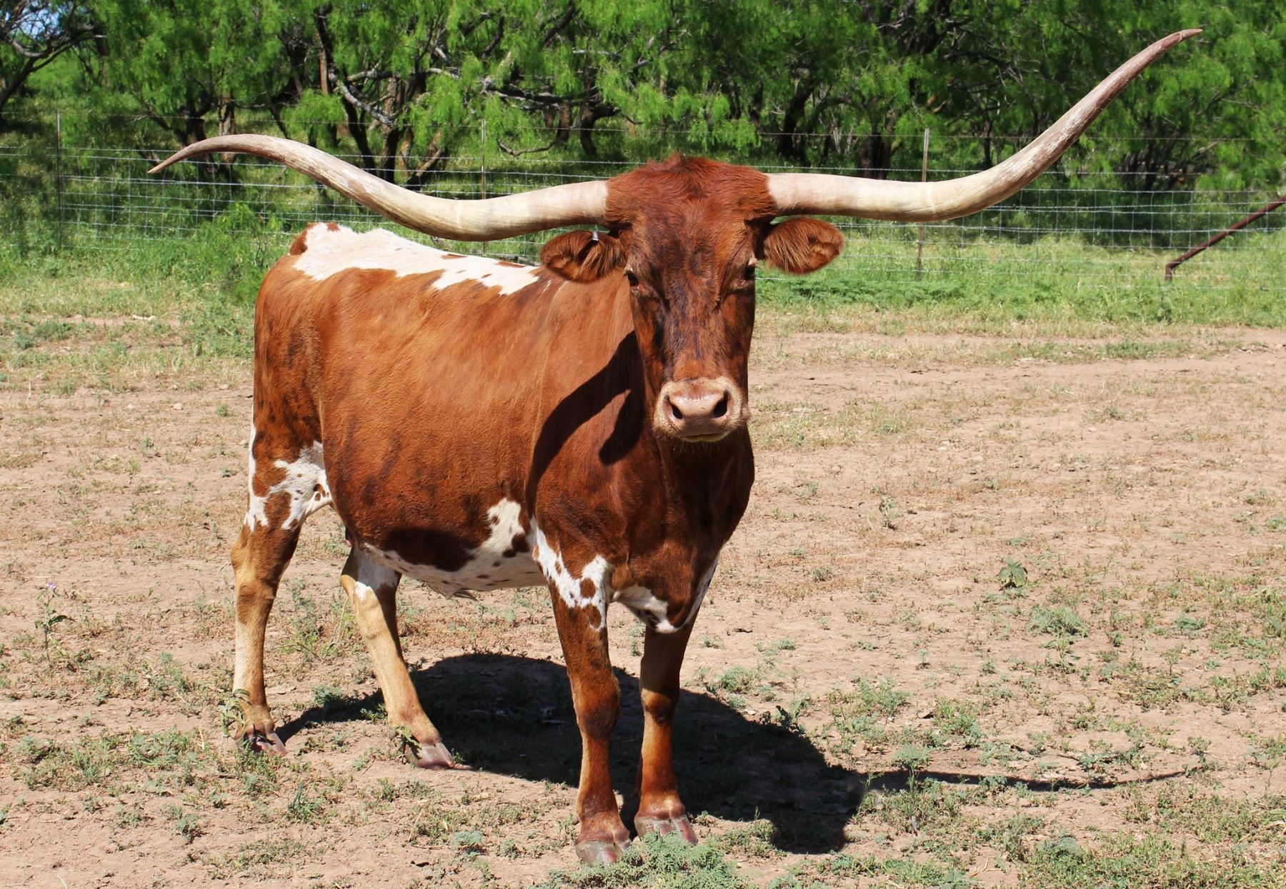 Comments: OCV. She is an impressive brindle lineback cow with twisting horns, a terrific pedigree that is super friendly and measured 81” TTT in October ‘21. She is bred to Jack Pot (87 1/2” TTT) and should calve in the summer. She has produced some amazing heifers for us. For more information go to our website (www.redpeakranch.com).