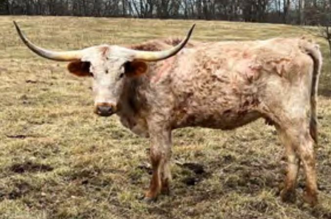 Comments: High Storm is a pretty red roan like her grand sire Top Caliber. This young cow has lots of potential. She raised a nice heifer calf her first time out. She is bred to an Angus bull for a spring crossbred calf this year