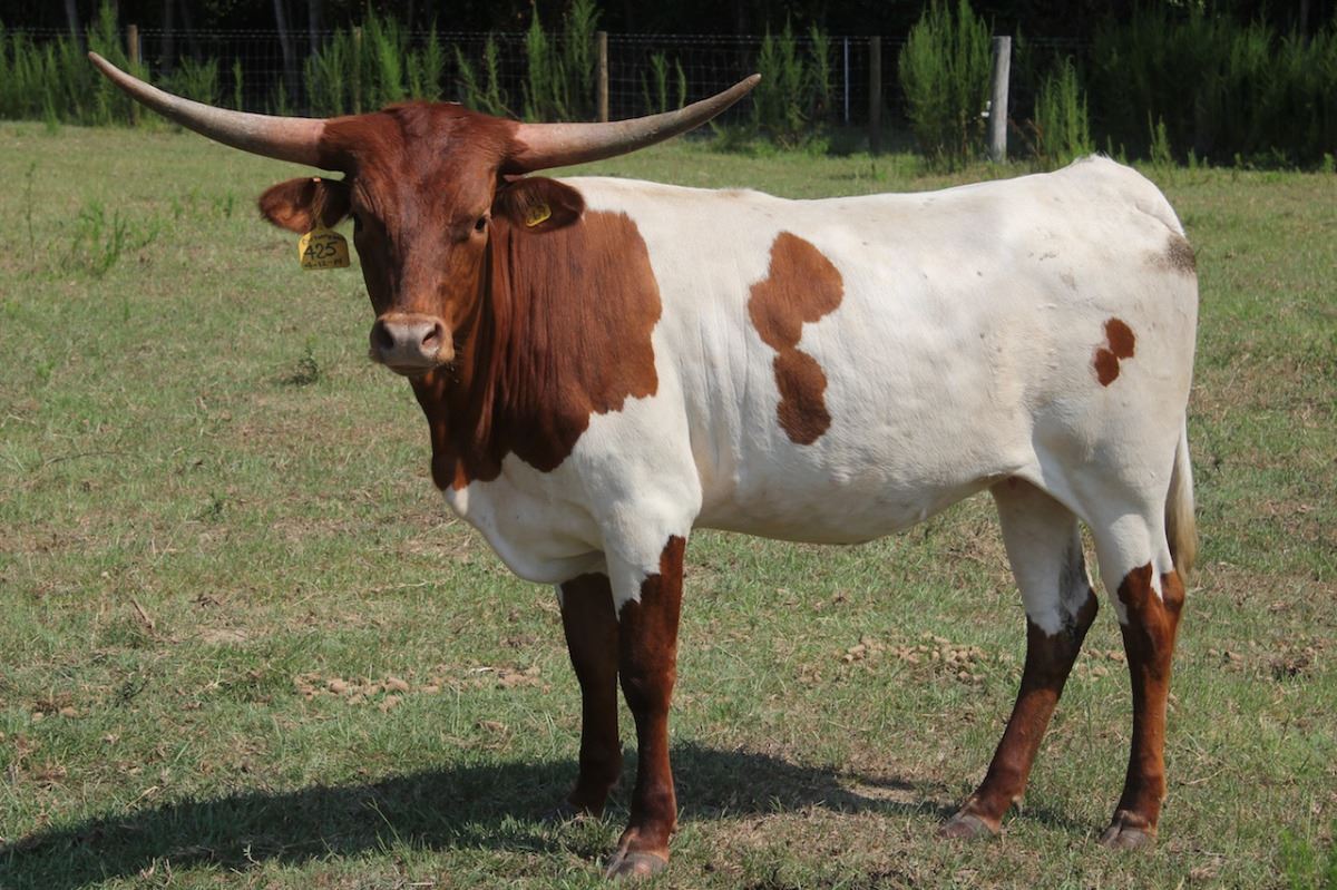 OCV. Take a look at this heifer out of the longest horned bull in the breed, Cowboy Tuff Chex. Her mother is a strong Rio daughter, so you have the Bob Loomis breeding top and bottom. The only way to make this heifer any better was to breed her to the 2nd longest horned two year old bull in the world today, Monika's Sun. Think about the genetic gold mine this heifer will produce. Click to View