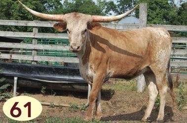Comments: This is a pretty heifer with a lot of horn. She should be well into the 60's as a baby two-year-old, and has a great pedigree! Hunts Command Respect on top, El Coyote on the bottom, and the Great Tari Graves. She is bred to HBR Plum Cowboy. She may calve before the sale. That should be a great cross! She is Millennium Futurity eligible. Check us out at www.rrrlonghorns.com.