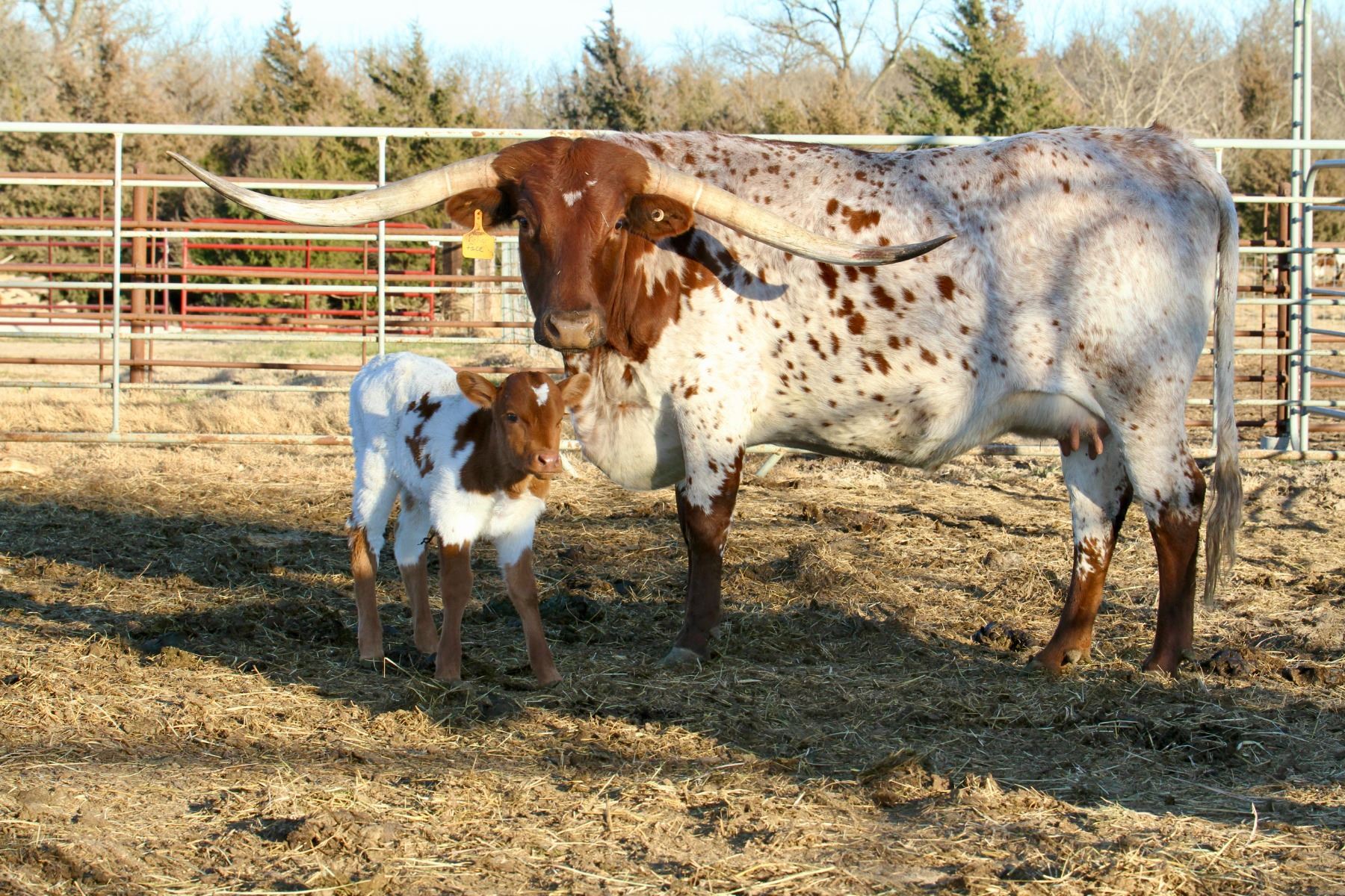 COMMENTS: Who doesn’t like a swoopy horned, big bodied cow with a heifer baby at side?!?! Not to mention a granddaughter of the one and only Playgirl PC354. Heifer calf at side by HL Missing Link (50/50 x D/O Miss Grande). Exposed back to HIL5 Ol Son.