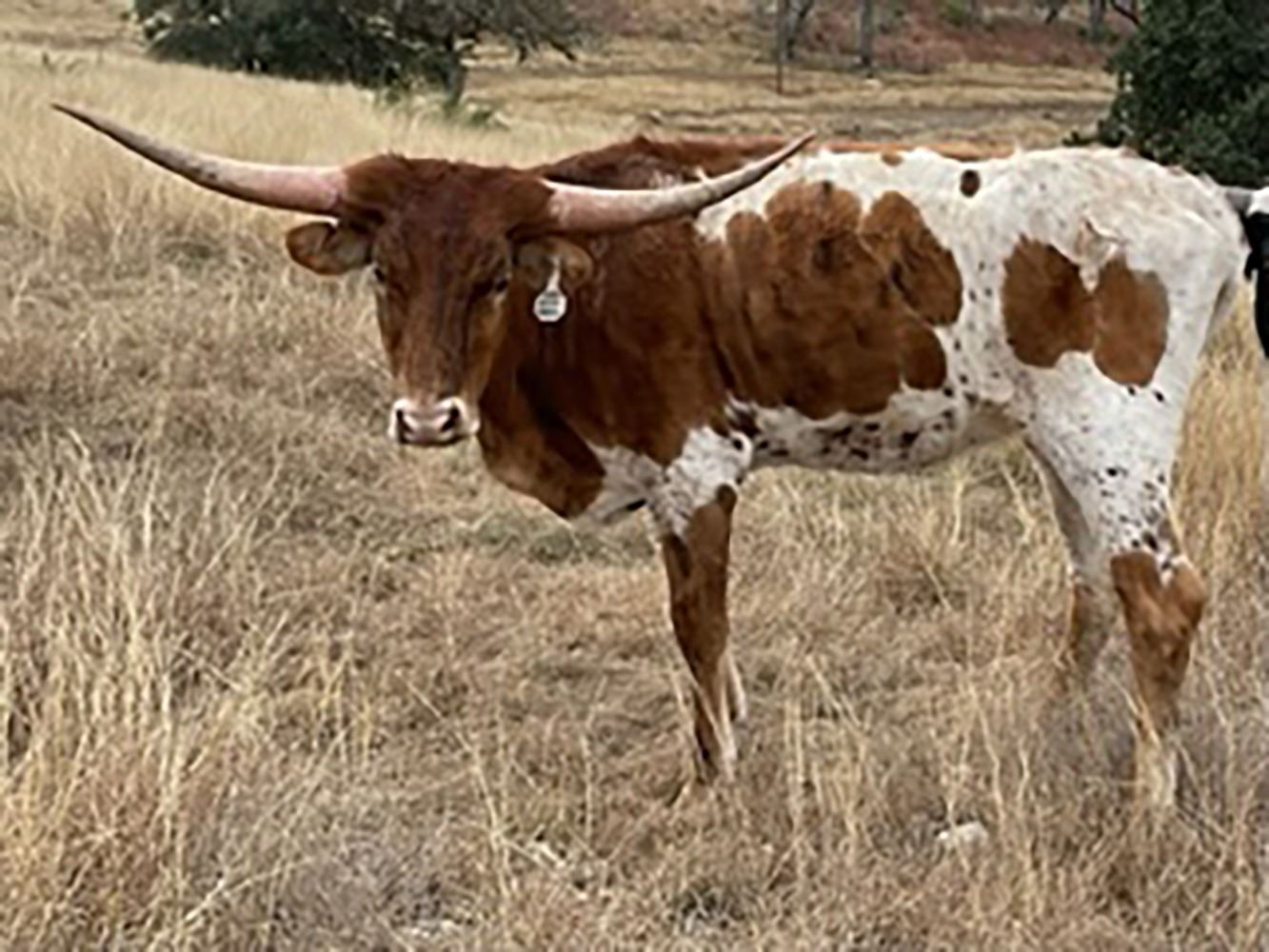 COMMENTS: HH Cattle Co’s 2022 consignments are all family affairs! HH Texana Hopes is the daughter of 88” TTT RM High Hopes and Texana Super Secret (Lot 72), a 80” TTT solid red cow out of Leona by Tejas Star. This beautiful heifer has been exposed to Mike Casey’s young black and white bull Texana Cowboy LM. He is the son of Century 100 and LM Texana Cowgirl and grandson of the spectacular 3S Danica and HH Samurai. Horns aplenty in this family