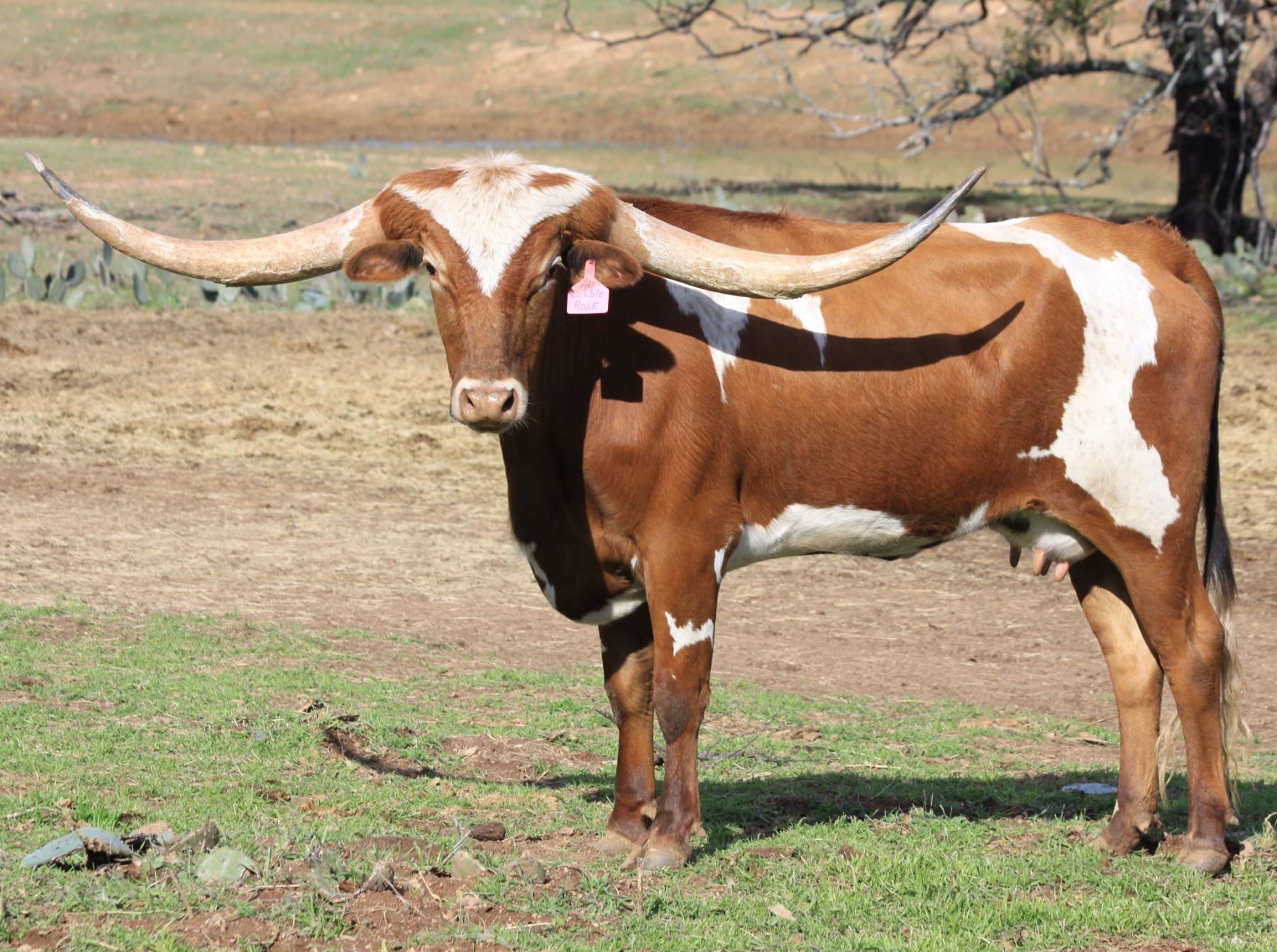 Comments: OCV. HL Double Rose is one of the most stunning daughters of HL Double Barrel. She has an incredible low swooping horn set that will only get better with time. At two years of age, she recorded one of the highest tip to tip measurements ever for a Double Barrel daughter. Current measurements at sale. Her dam, Zeus’s Rose, is out of the stunning over 90” Temping Rose cow. She gave us an absolutely beautiful replacement heifer