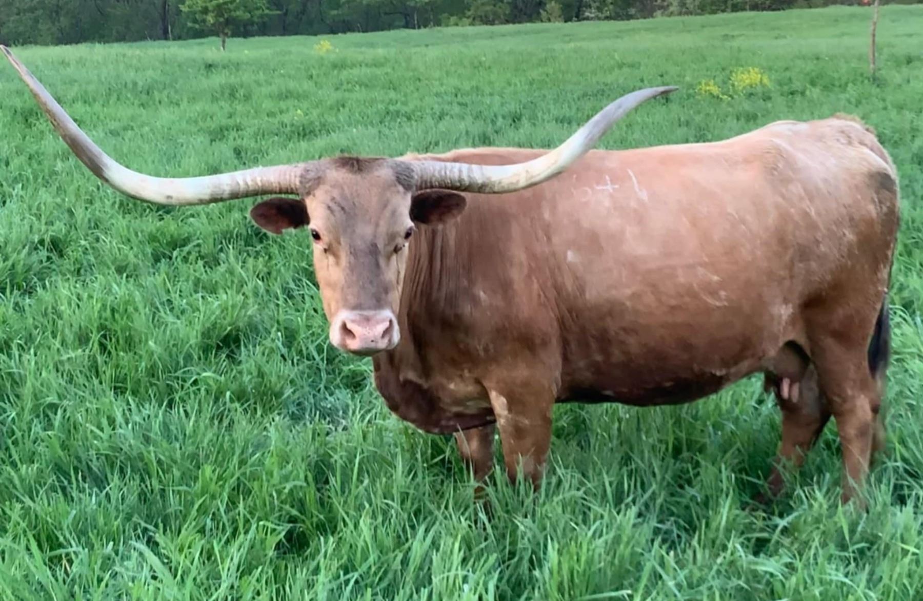 Comments: A good solid cow with 80” horn and bred by Jimmy Jones.