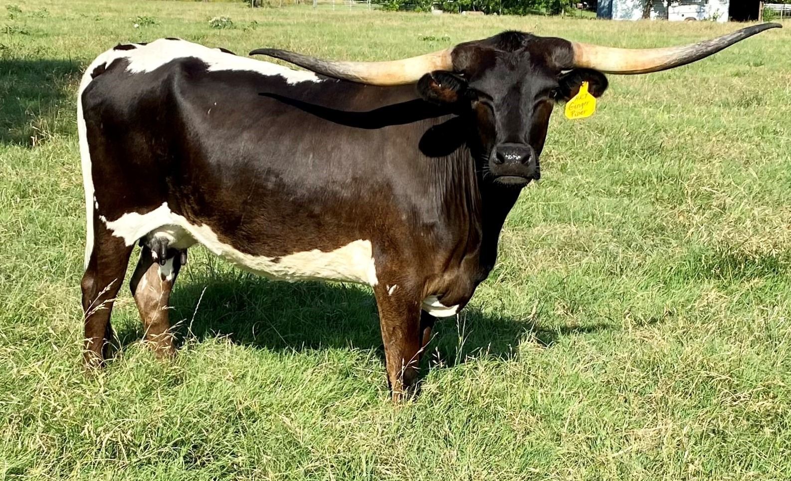 A smooth, silky Sniper daughter. If you're interested in adding some color into your herd, she will do it. With her true black markings, there is no question that she is a beauty! She has a 3/25/2022 bull calf at side out of PCC Silver MIne. Exposed to Dynamic; palpated too closed to call on 11/12/2022