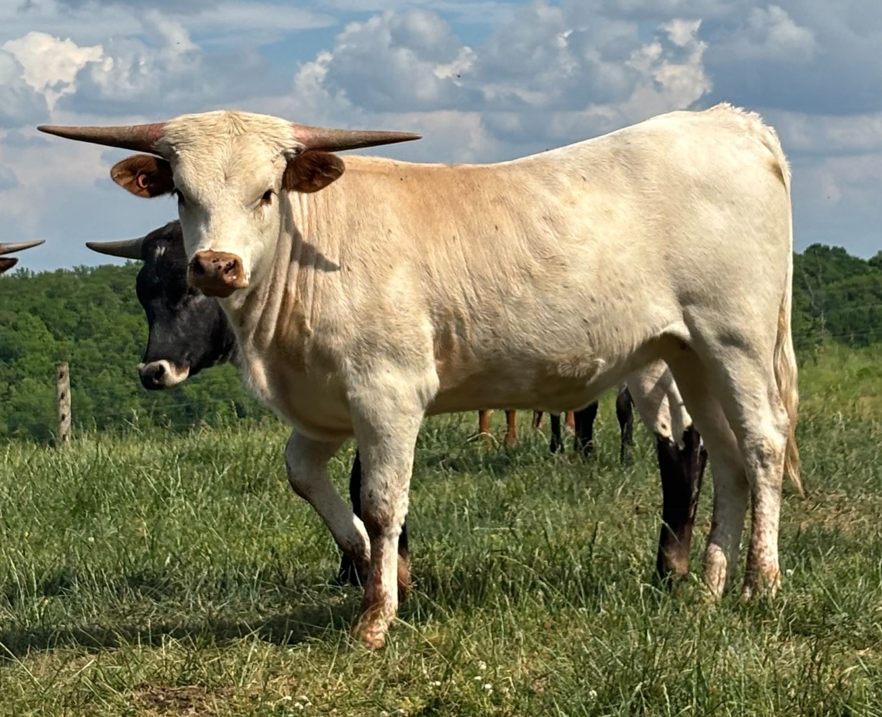 Treasure me has an awesome color pattern, horn shape, and disposition. Her maternal grand dam is the great 7 Bar Julies dignity, who is over 95" ttt and a cornerstone in our herd.