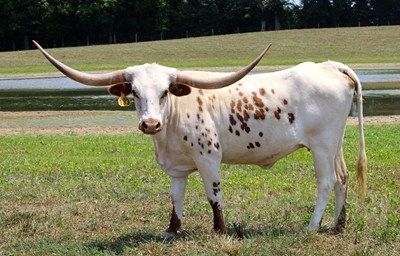 Hubbell’s Safari Sue is a Rio Safari Chex daughter who has a great horn set that measured 66” ttt this past June, 2 months before she turned 4 years old. She is bred to either Country Chex or JP Rio Grande for a very promising calf. This cow will mature into a “big-horned” Longhorn cow one day. Here is an opportunity for any breeder to improve his/her herd.