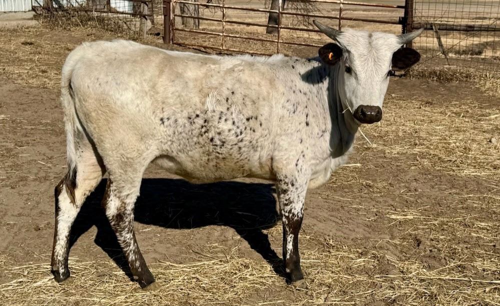 Comments: Gentle, blue roan heifer. Her sire is a grulla bull. She has great