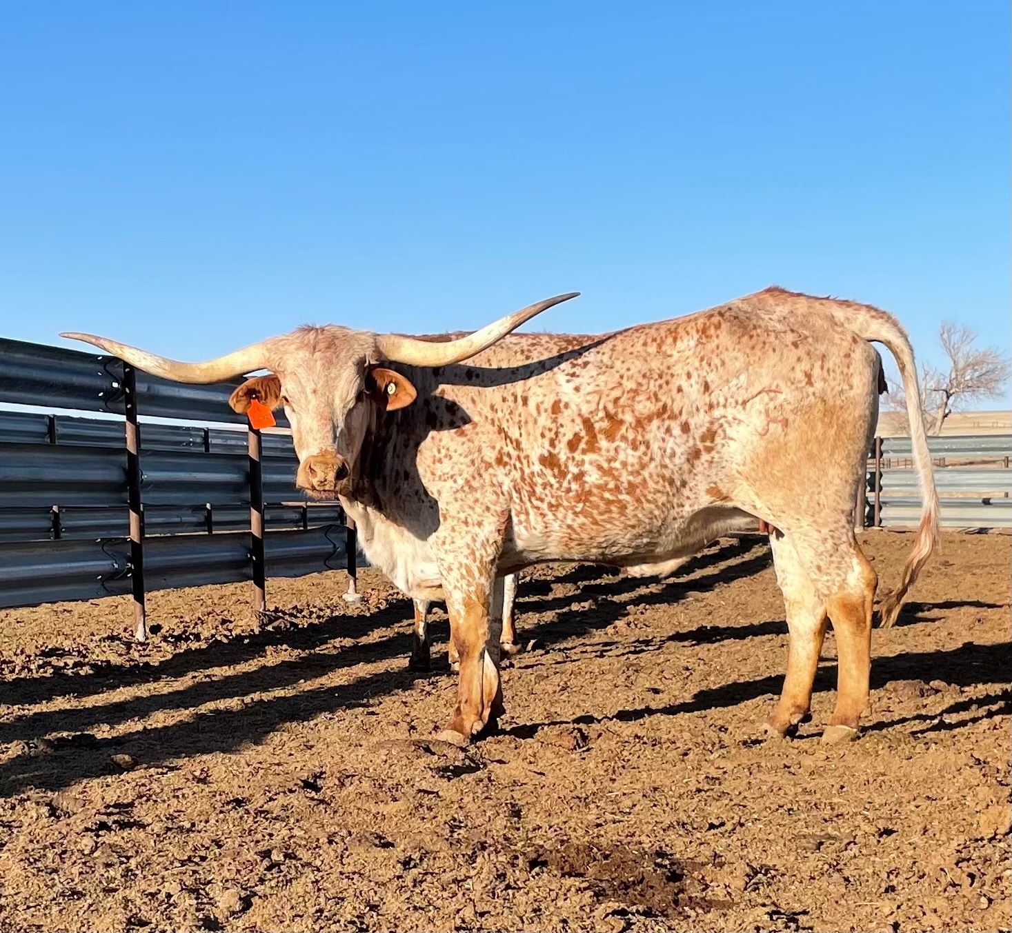 has a ton of total horn by the Butler bred Loomis bull, JH Jim Chex out of BL Poco Lena, the big VJ Tommie son going back to BL Poco Bueno. She’s bred to Rural Safari Son, the 2022 Legacy Spotlight Bull. You’re going to get size, color, and twist with this one.