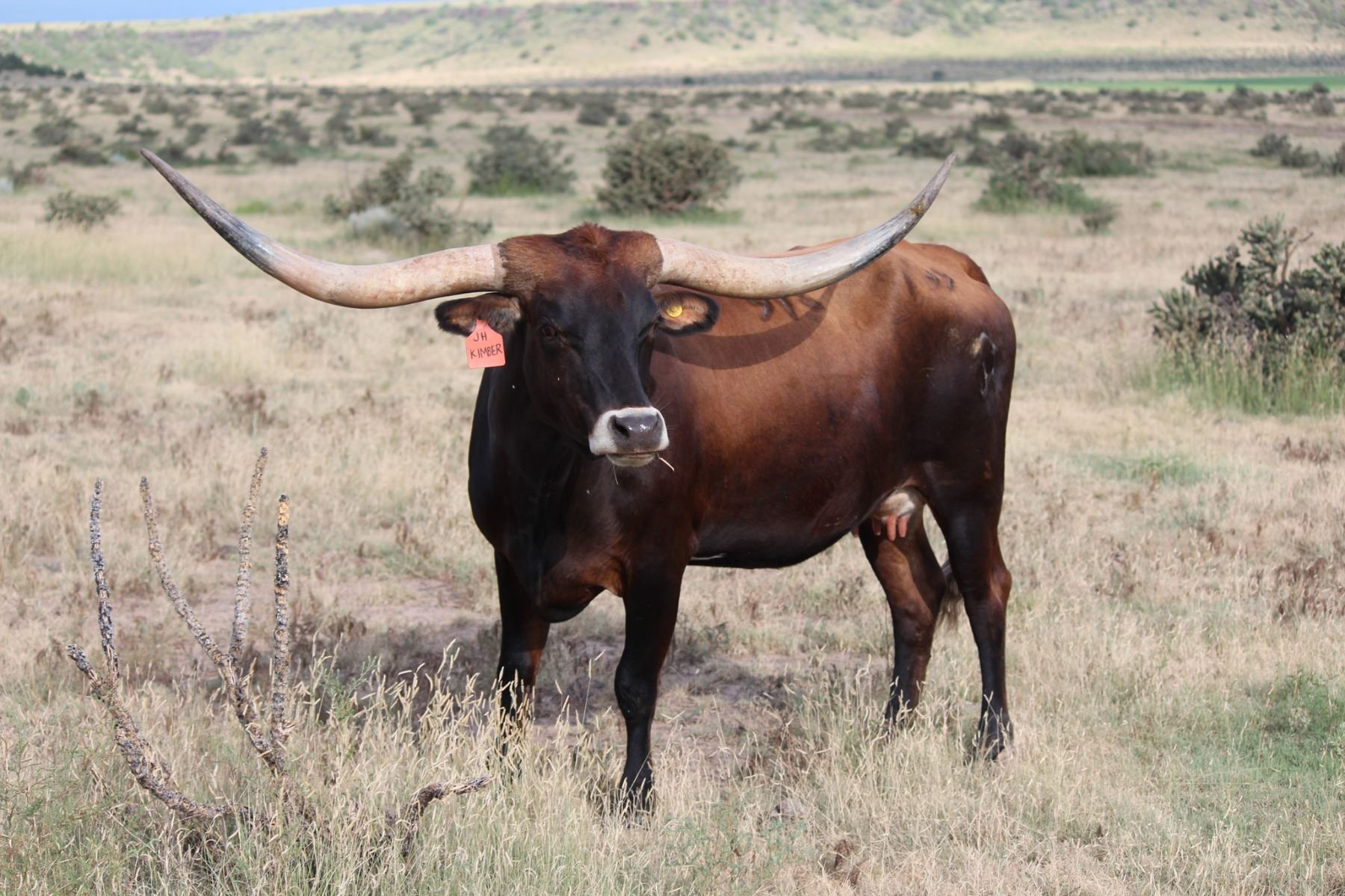Kimber is a beautiful parker brown four year old who is a very complete cow. She measured 69” TTT and 82 5/8” TH on 11/12/22. She is out of Kimberly who has a total horn measurement of 127.0625”. Her sire is Night Safari’s Son, who is out of the industry’s longest bull – Cowboy Tuff Chex and her dam Night Safari BL. Night Safari BL is also the dam of over 90” Rural Safari Son. Kimber sells with her bull calf at side out of Freeman Ranch’s true black bull Committed. Kimber will come exposed to Lightning In A Bottle for a chance at one heck of a calf. Owner: Freeman Jarnagin Partnership. Located in Kim, CO