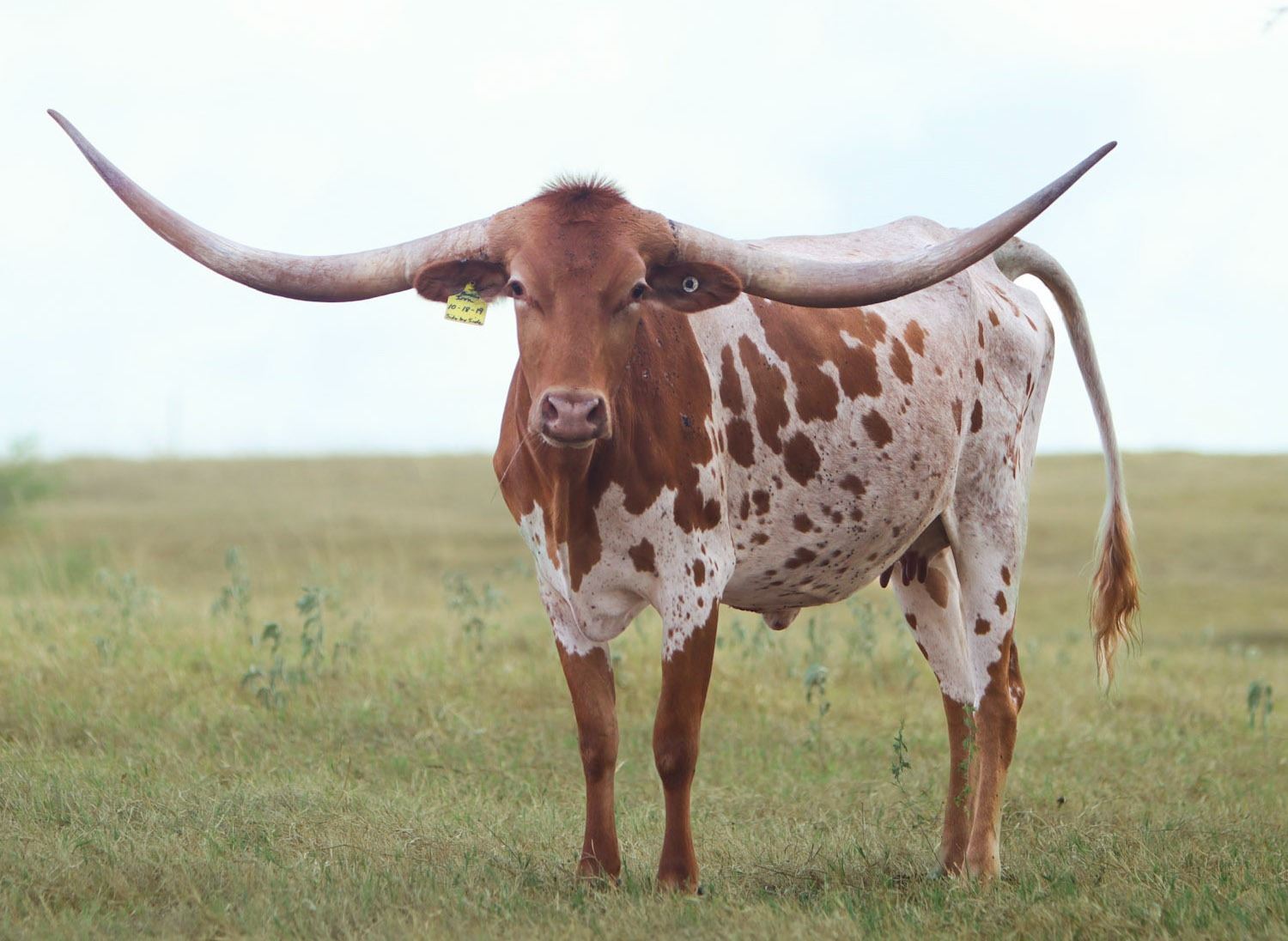 Comments: No words for this outstanding young cow! Even with the swoop on these horns, she still measures over 71 inches before her 4th birthday. The bonus is that she is a Side By SIde daughter and is as calm, quiet and gentle as her sisters.