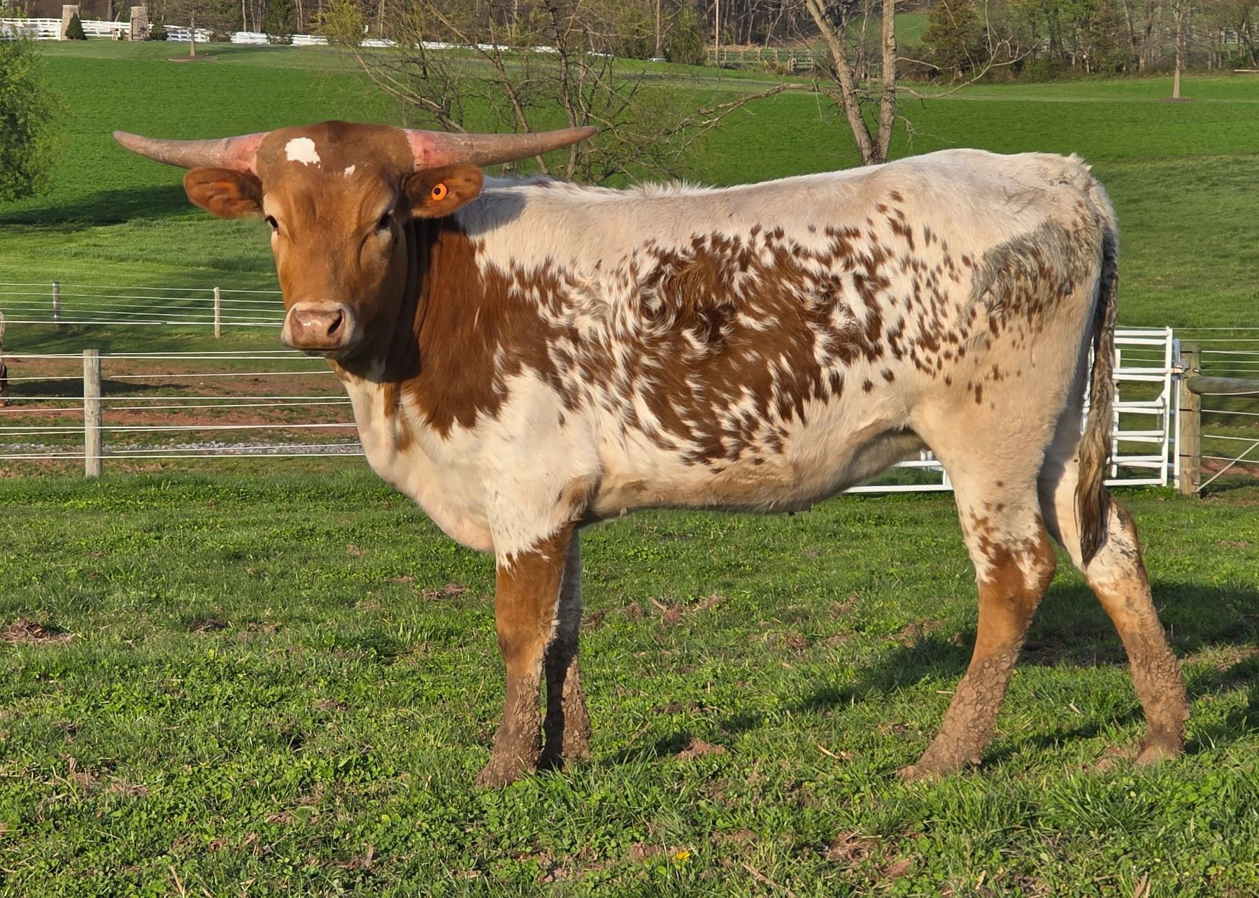 This girl has everything you want in a young heifer, color, body, quiet and easy