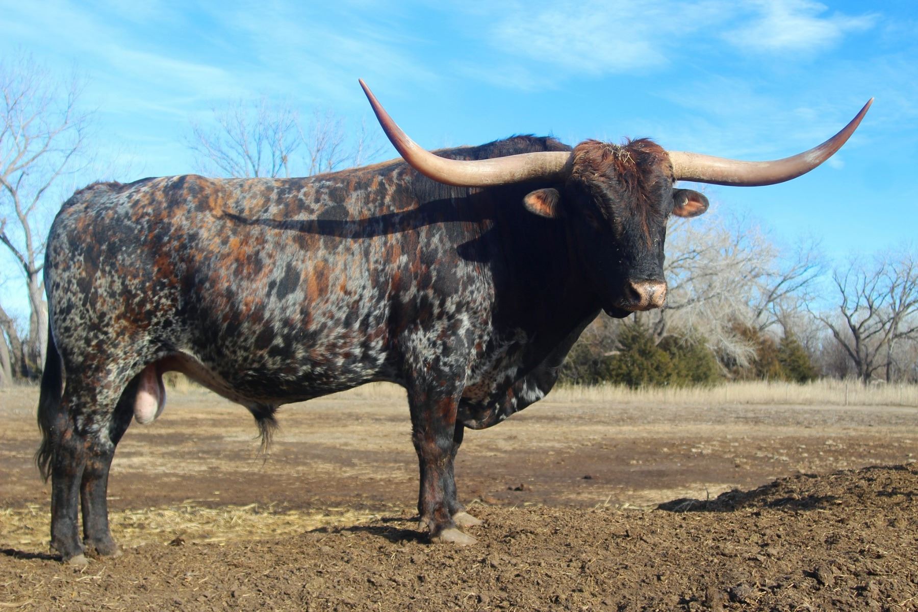 Nice young easy going bull with tons of color! Excellent pedigree with a nice twisty horned dam. Drag Iron, Sweet Kookateu, BL Rio Catchit just to name a few in his bulls DNA! Parentage DNA verified and markers on file with the TLBAA.