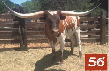 This is a truly outstanding consignment! She is one of the most incredible three year old you will ever see. Measuring 73 1/2 inches TTT at just three years and two months old, she sells as a two-in-one being confirmed seven months bred to KCC Dragonslayer (79“ TTT), our outstanding Drag Iron son. Lots of blood in the horns, perfect symmetrical horn shape, fantastic color, Rio Grande genetics, and a calf ready to be dropped in October, she is a dream acquisition for any breeder ! Her sire, El Presidente Bueno, is a Horn Showcase Champion (80.5 “ TTT) and her dam is a Rio Grande daughter measuring 78” TTT.