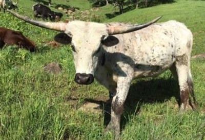 WITH HER SIRE DRAGONSLAYER AT 79” T2T AND HER DAM AT 74” T2T THIS YOUNG HEIFER IS ON HER WAY TO THE MID - 70S. BEAUTIFUL LATERAL HORN AND VERY GENTLE. THE PICTURE DOESN’T DO HER JUSTICE - VERY STRIKING IN PERSON! THIS IS A VERY FINE TWO YEAR OLD HEIFER. Click to View