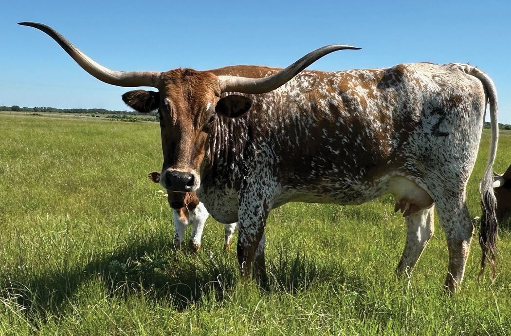 framed cow, beautiful brindle speckles, twisty horn and a greater mother. This is