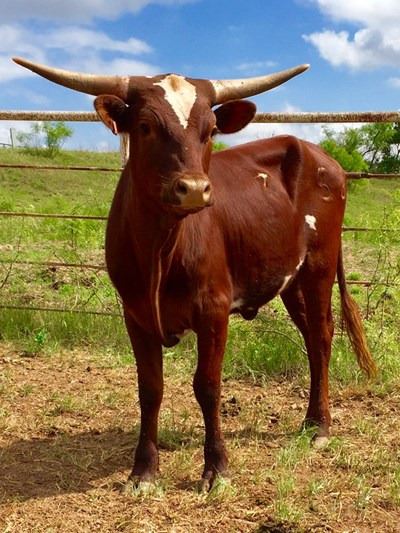 OCV. This chunk of a heifer has it going on. Horn, conformation and the pedigree to back it all up. Black Kettle has been doing great things for the Randolphs and this heifer is no exception. She is out of the proven cross of HCR and Chuckwagon that worked so well fo the McGill herd. Her big bodied dam is over 73" T2T and over 100" Total. If you're looking for a total package heifer, here she is. Breeding announced on sale day. Click to View